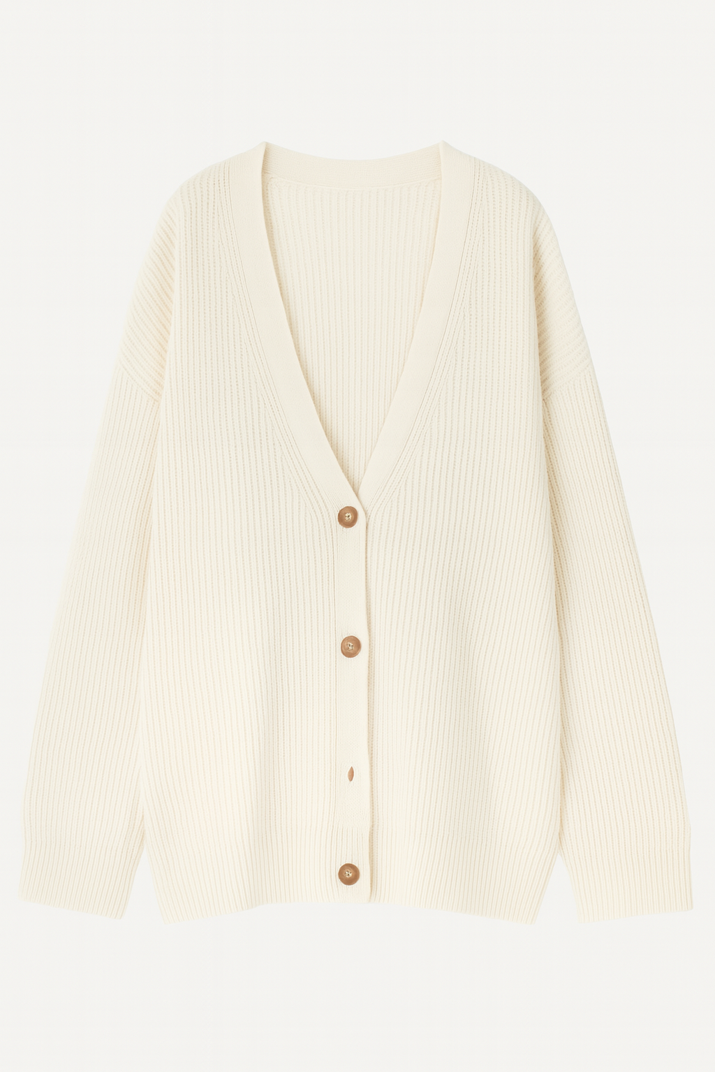 Kardigan Oversize | Dekolt w Serek | Dzianina o Prążkowanej Strukturze