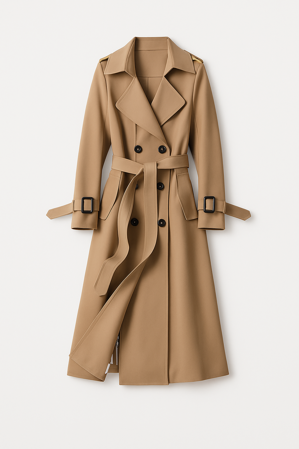 Klasyczny Trencz Damski | Dwurzędowy | Pasek w Talii