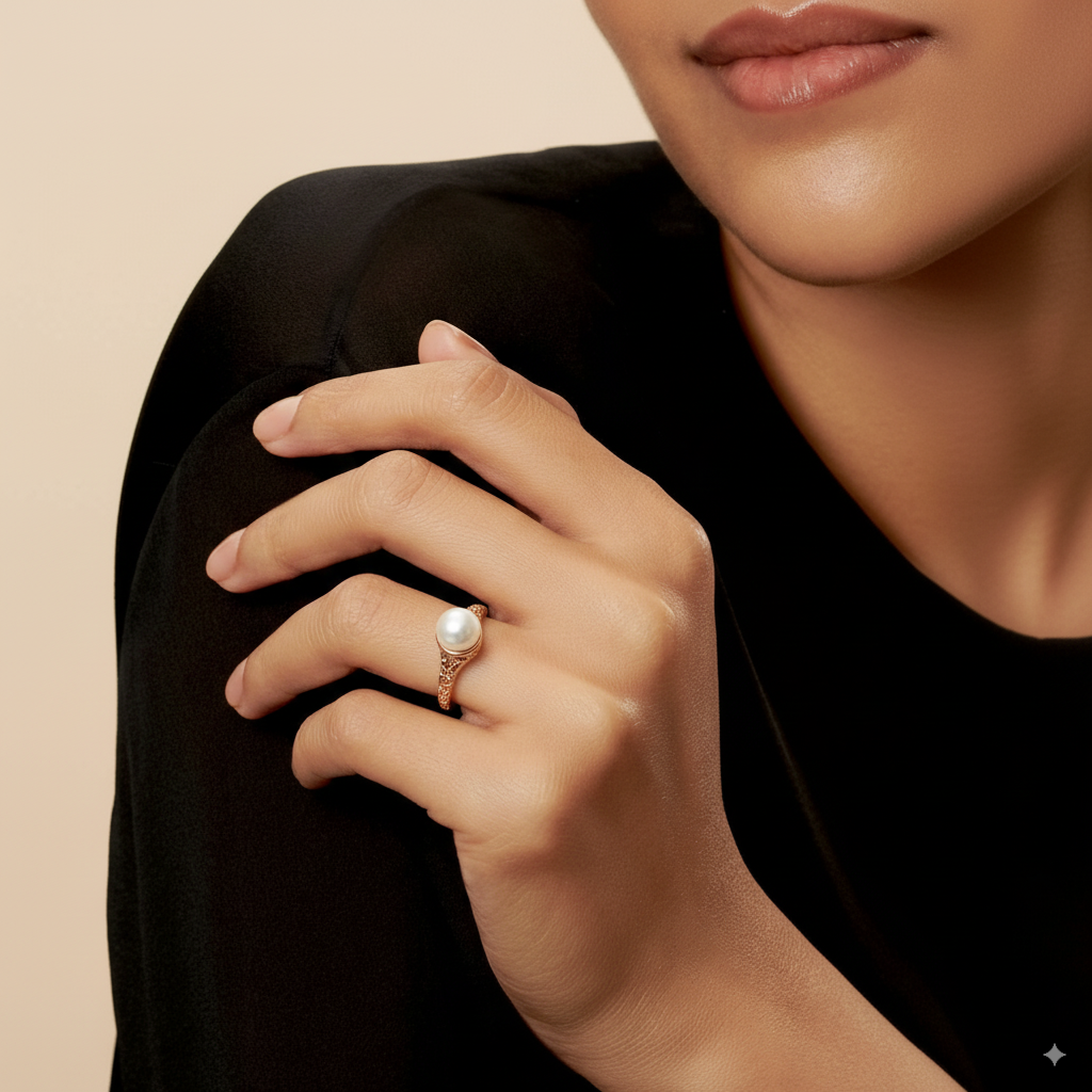 Złoty pierścionek z perłą w stylu vintage